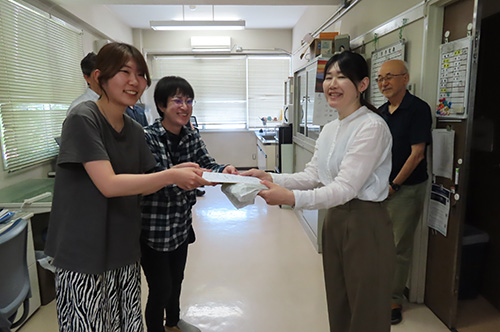 約5年間、施設の事務を担当してくれた塩田さんが退職されることになり、最終日の6月30日に記念品贈呈式を行いました。